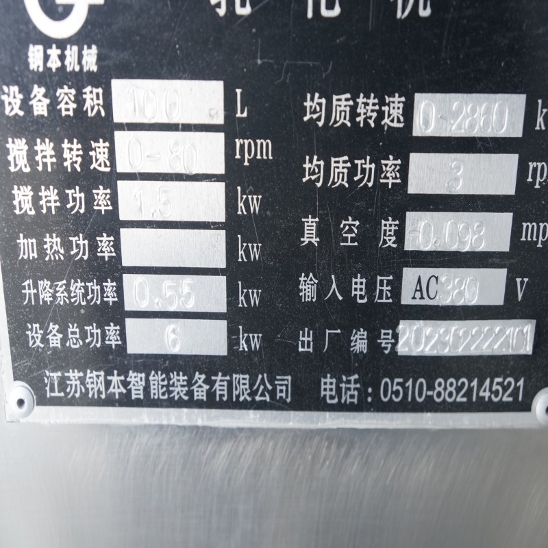The 100L vacuum emulsifying mixer is a device designed for emulsifying and mixing various substances in a vacuum environment. This equipment features a mixing tank with a capacity of 100 liters and is widely applied in industries including food, pharmaceuticals, cosmetics, and pesticides.