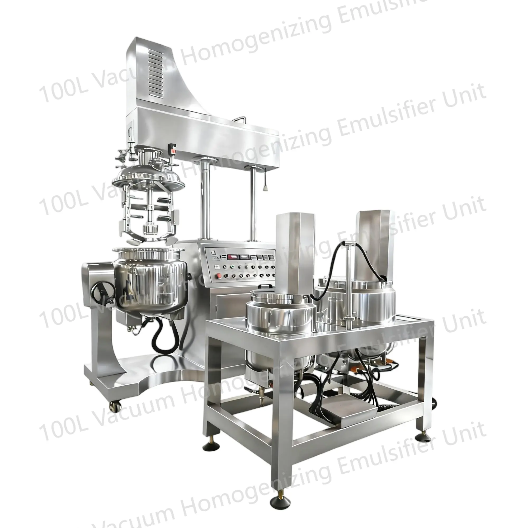 The 100L Emulsifying Unit is a industrial-grade equipment designed for medium-scale emulsification, homogenization, and mixing. Equipped with a high-power rotor-stator system, it delivers strong shear force for uniform, stable emulsions. Made of 316L stainless steel, it meets FDA, GMP, and CE standards. Featuring digital control, temperature regulation, and safety safeguards, it’s ideal for batch production in cosmetics, pharmaceuticals, food, and fine chemical industries.