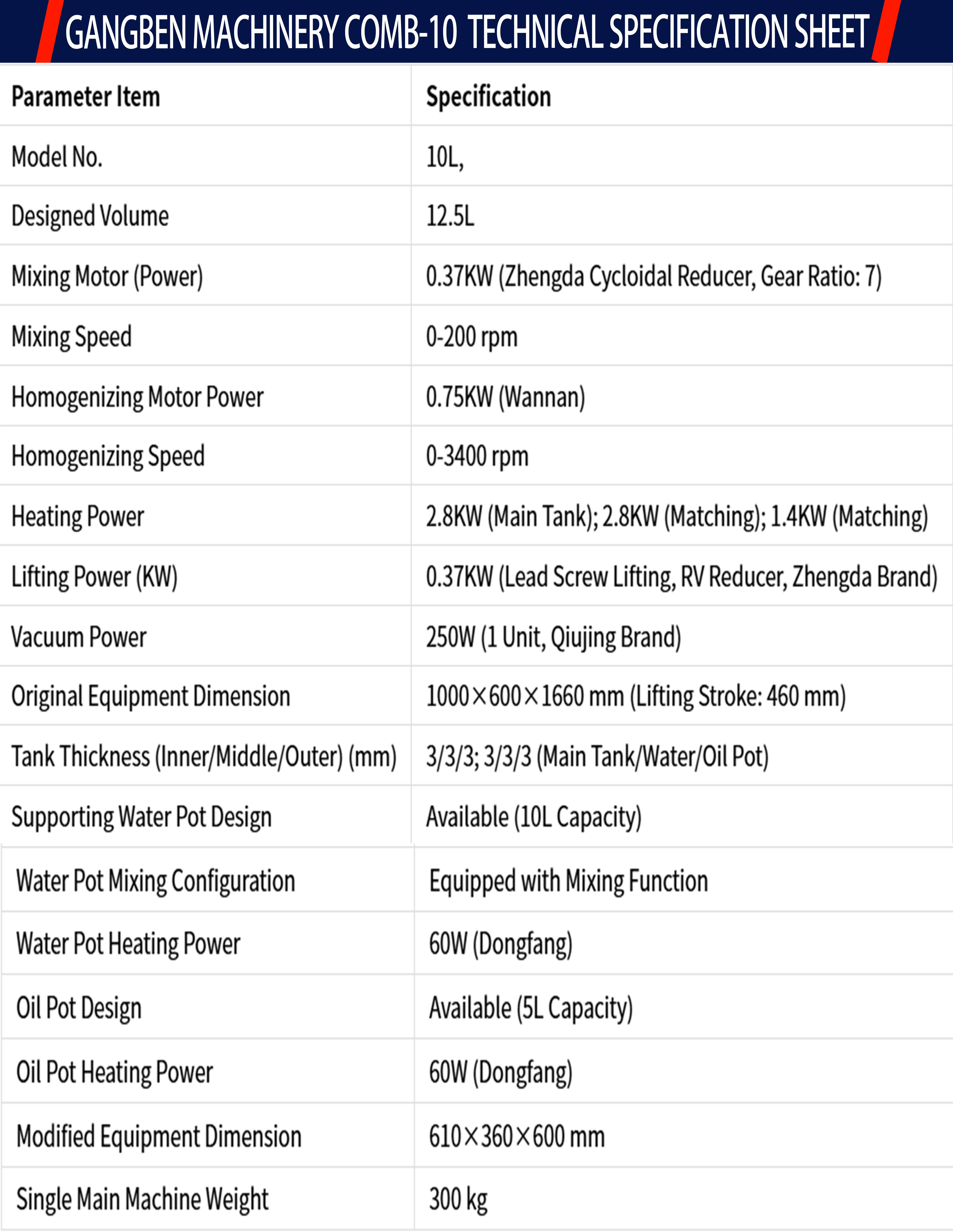 In summary, the 10L vacuum emulsifying mixer is a medium-to-small-capacity device suitable for handling medium to small batches of materials. However, correct operation and regular maintenance are vital to ensure its consistent performance and prolonged service life.