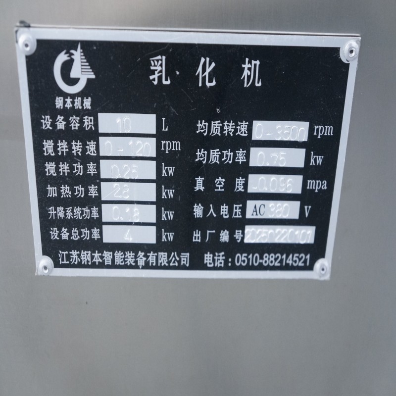 The 10L vacuum emulsifying mixer is a device designed for emulsifying and mixing various substances in a vacuum environment. It features a compact yet practical capacity, making it suitable for processing medium to small batches of materials.