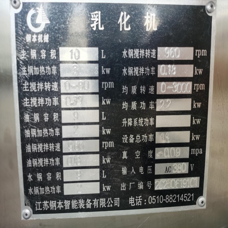 At its heart lies a precision rotor-stator emulsifying head, capable of variable speeds up to 3000 RPM. This system generates intense shear force and turbulent mixing, effectively breaking down droplets and dispersing particles to form stable emulsions with uniform particle size, avoiding common issues like creaming or phase separation. The 10-liter working tank and all product-contact parts are constructed from 316L stainless steel, chosen for its corrosion resistance and compliance with global hygiene regulations (FDA, GMP), making it suitable for sensitive applications.Designed with user convenience in mind, the unit features an intuitive digital control panel that allows precise adjustment of operating parameters and real-time temperature monitoring, ensuring repeatable processes and consistent product quality. Safety is prioritized with interlock systems that automatically halt operation if the tank cover is opened, reducing workplace risks. Its compact design saves space, fitting easily in labs or small production areas, while the modular structure simplifies maintenance and part replacement.