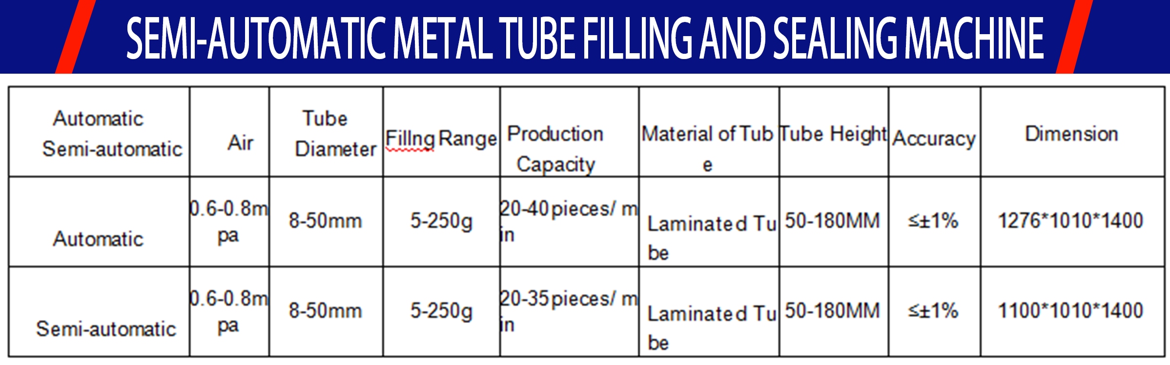 The Semi-automatic Metal Tube Filling and Sealing Machine is a flexible packaging solution for metal tubes, suitable for small-to-medium batches in pharmaceuticals, cosmetics, and adhesives. It features manual tube loading with precise piston filling (±1.5% accuracy) and reliable crimp sealing. Constructed with 304 stainless steel, it complies with GMP standards. Compact, easy to operate and maintain, it adapts to tube diameters 8-50mm and tube heights 50-180mm, ideal for businesses needing versatile, cost-effective packaging.