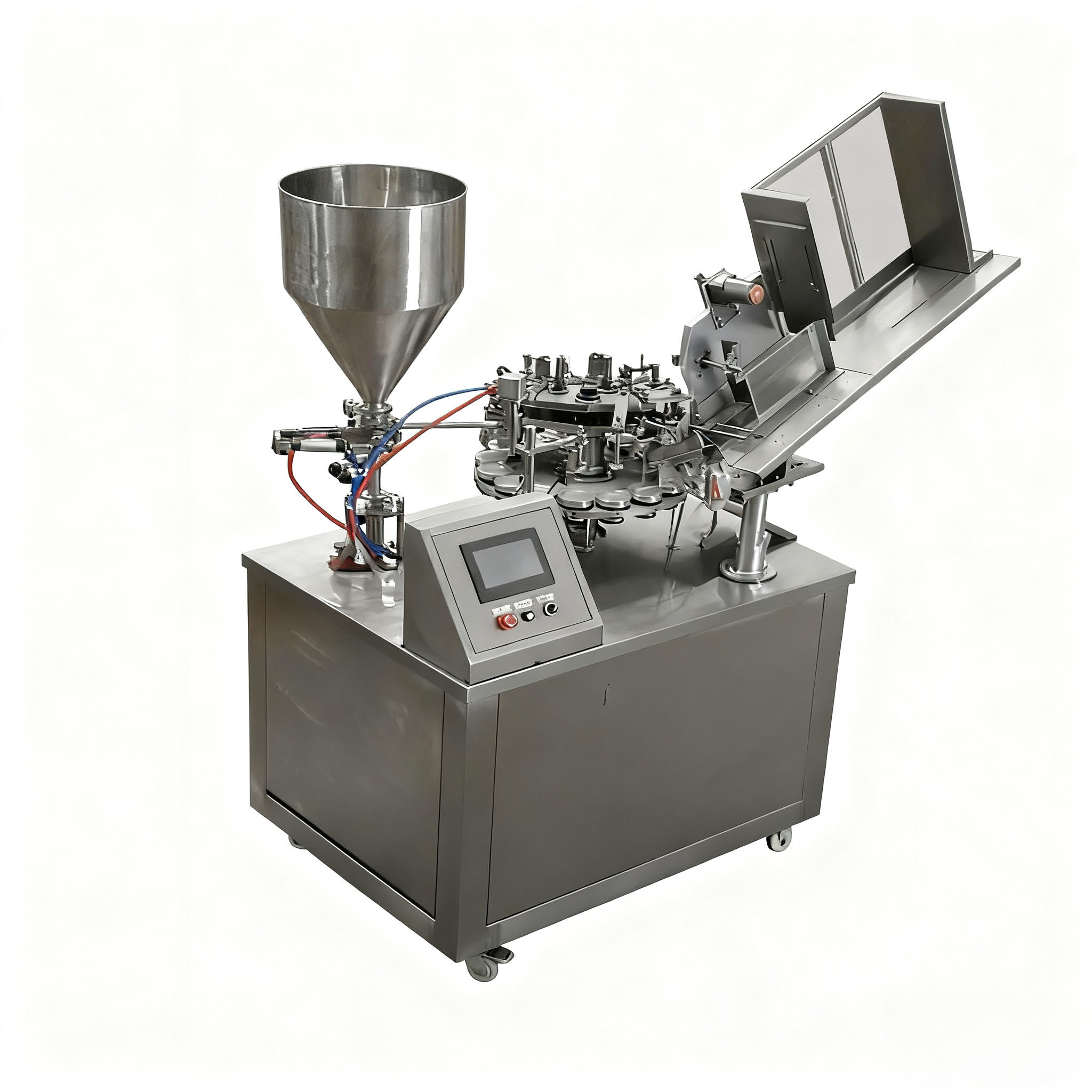 The filling and sealing machine is a type of highly automated packaging equipment with diverse mechanical types and technical advantages. It is widely used in product packaging across industries such as pharmaceuticals, food, cosmetics, and daily chemicals. Its primary function is to accurately inject various fluid materials—including pastes and liquids—into tubes or containers, and to complete operations such as sealing, printing batch numbers, and production dates.
